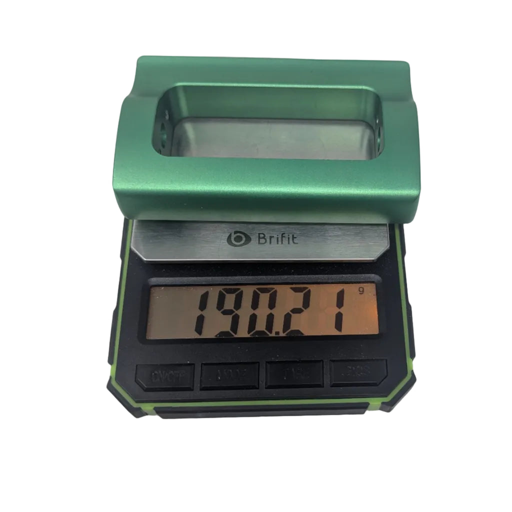 Weight: 190.25g bare. 219.25g with bearings and pulley installed.