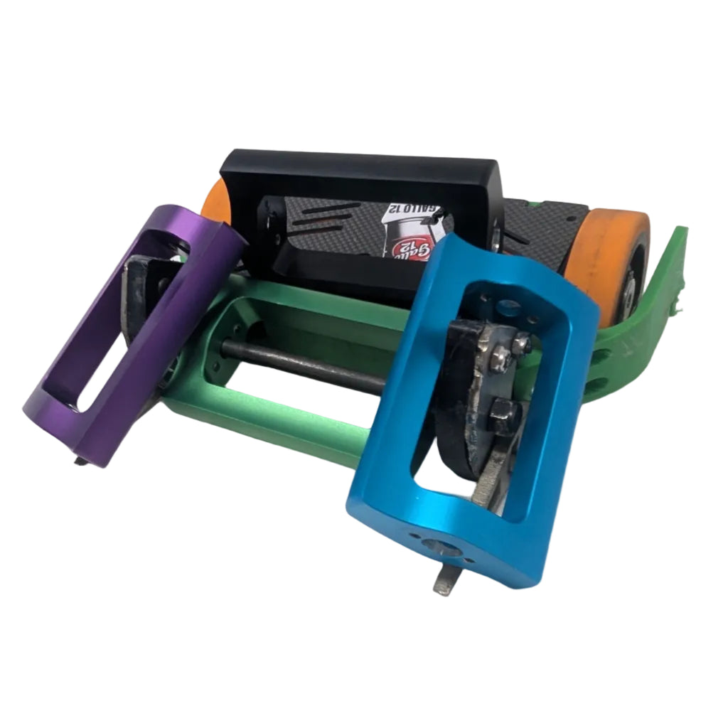 Drop in upgrade for any bot running an FTBB footprint. Designed to maximize power/weight in a cost effective package. Compatible with the 30T Fingertech pulley as well as the 8-32 mounting screws, SCE55 bearings and 5/16" weapon shaft. Add the needed accessories now for a special discount. Available in Black, Green, Purple & Blue.