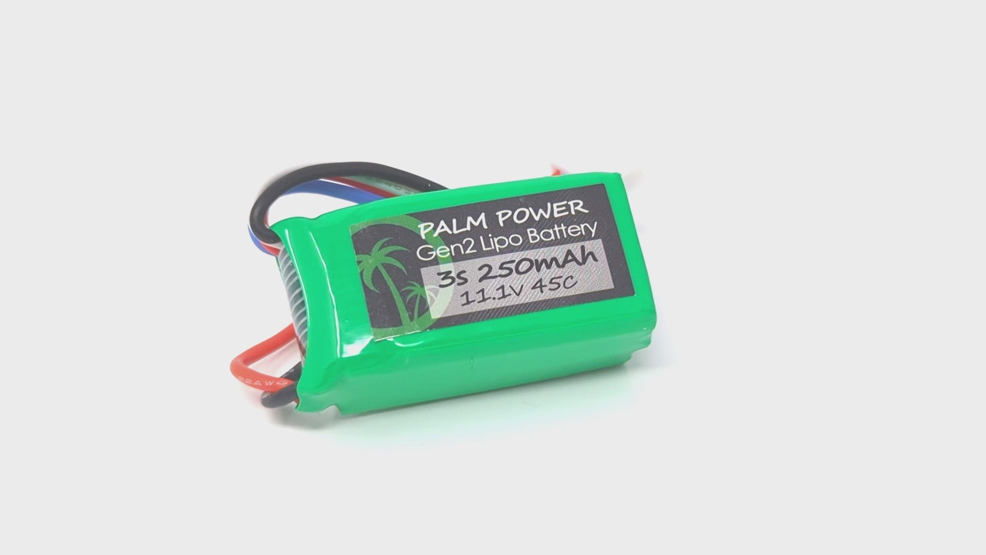 Palm Power 3S 250mAh battery with a high 45C discharge rate and JST connector and balance lead for charging.