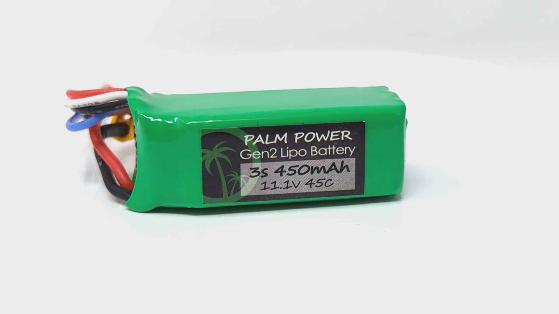 Palm Power 3S 450mAh battery with a high 45C discharge rate and XT30 connector and balance lead for charging.